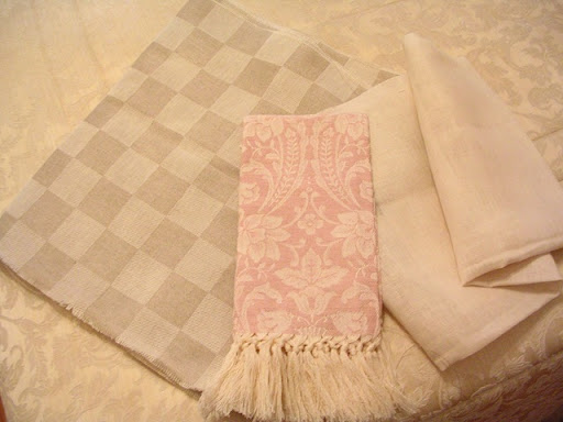 Eccomi qua! Allora, fatto l'ultimo esame, sono impegnata con la scrittura della tesi ed altre amenità... Quindi, stando 8 ore o giù di lì al pc, mi ritrovo a non aver molto tempo per occuparmi del blog. Ho comunque gandi aggiornamenti: sabato mi sono presa una giornata di pausa e sono andata ad Arezzo a trovare la mia amica Chiara. Abbiamo trascorso una giornata bellissima, durante la quale mi sono fermata al negozio di telerie Busatti. Se volete vistarlo ha molti punti vendita sparsi per l'Italia. Le tele che producono sono bellissime: semplici ma estremamente raffinate. Usano solo materiali naturali e telai dell'800, per una lavorazione unica. Purtroppo i tagli vengono fatti su pezze da 3,5m e quindi mi sono buttata su qualche scampolino... E ho avuto una gran fortuna! Ho acquistato una tela da tappezzeria nei toni ecrù, uno scampolino di lino panna 11 fili e un ascigamano piccolo con fantasia "Donna di coppe" sul rosa.