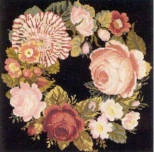 Questo è il cuscino "Lodden 1" il cui schema è pubblicato a pagina 32 del libro "Victorian Needlepoint" scritto d Beth Russell ed edito da Collins & Brown.