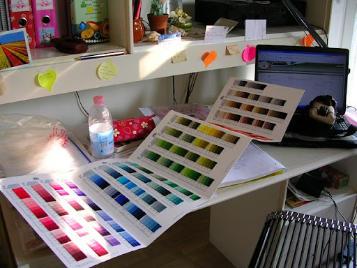 Dunque, noi siamo abituate a lavorare con le lane Colbert. Sono ottime, a quattro capi, ed ogni matassina misura 9m. Purtroppo sono anche care, e la loro dimensione non permette di fare lavori più fini. A questo scopo esiste la qualità DMC Medicis, ovvero la versione più sottile delle lane Colbert.